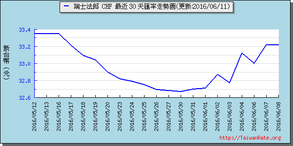 [紀錄時間: 2016/06/11_11AM]新台幣 對 瑞士法郎,chf 匯率換算比較,匯率查詢,即時線圖,歷史線圖,外匯交易